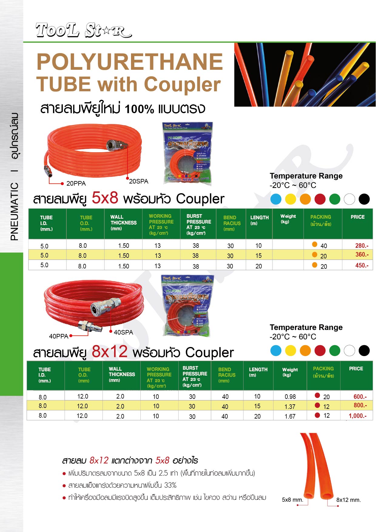 สายลมพียู PU แบบตรง พร้อมหัวคอปเปอร์(COUPLER) ใหม่100เปอร์เซ็น