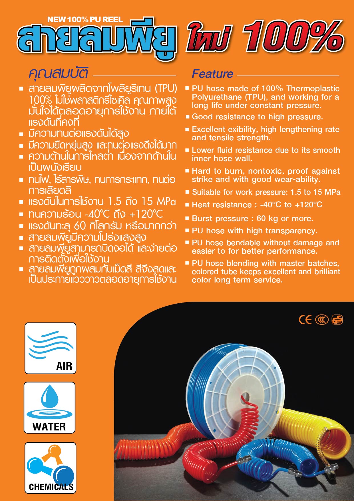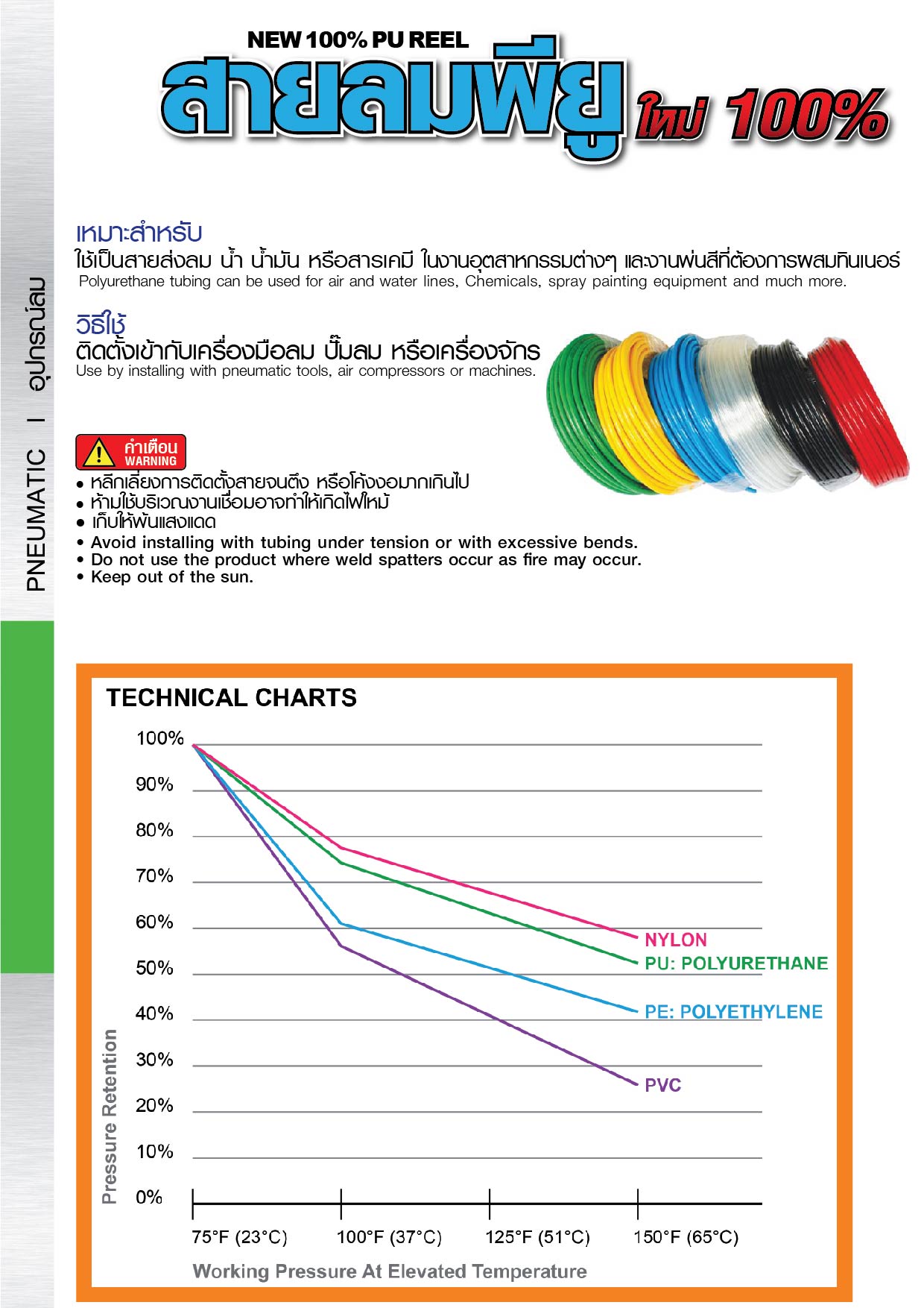 ท่อทำจากเทอร์โมพลาสติก โพลี่ยรีเทน (TPU)100% ทำงานได้ตลอดอายุภายใต้ความดันคงที่