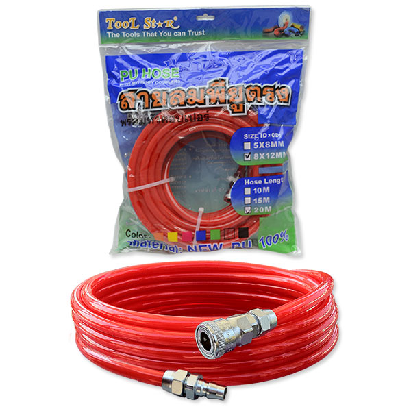 ชื่อสินค้า :สายลมพียู PU แบบตรงชื่อรุ่น:8x12mm ยาว20เมตรรูปทรง:ม้วน