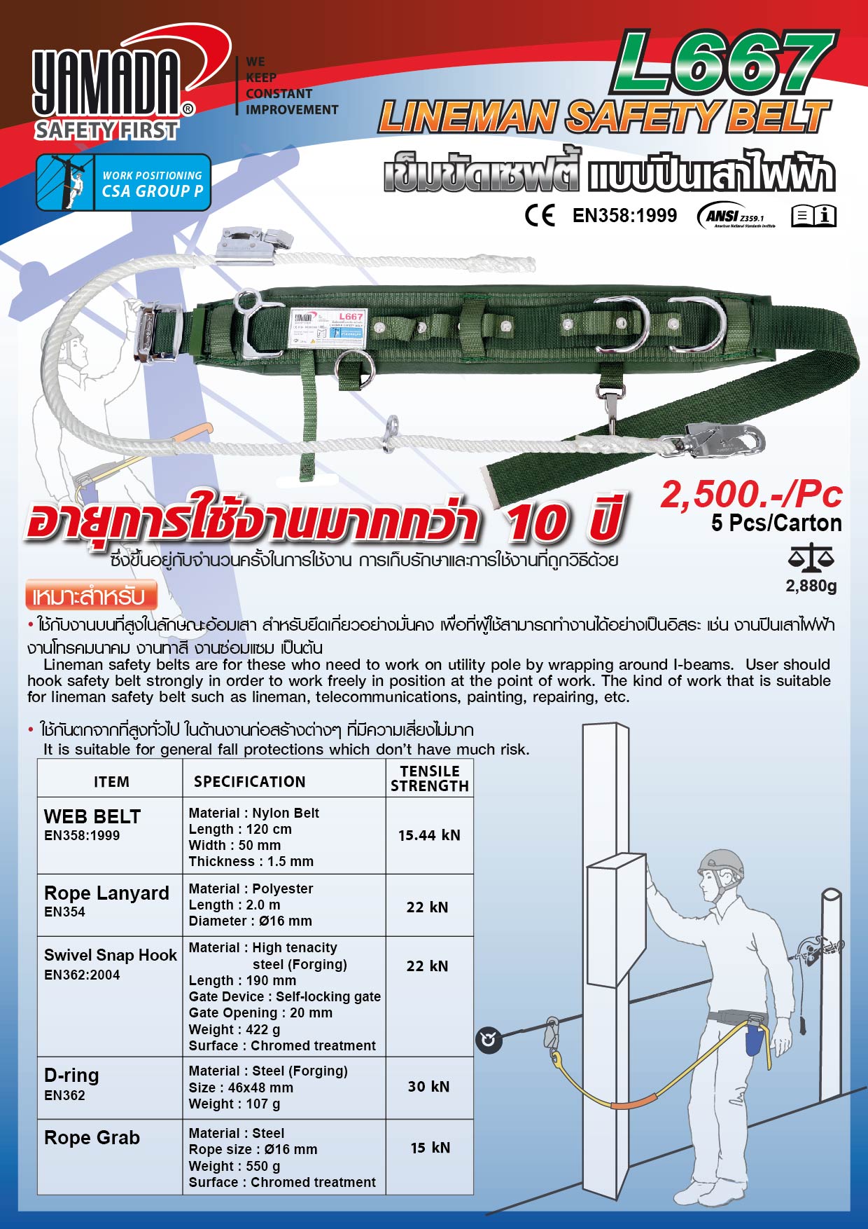 เข็มขัดเซฟตี้ แบบปีนเสาไฟฟ้า รุ่น L667 YAMADA