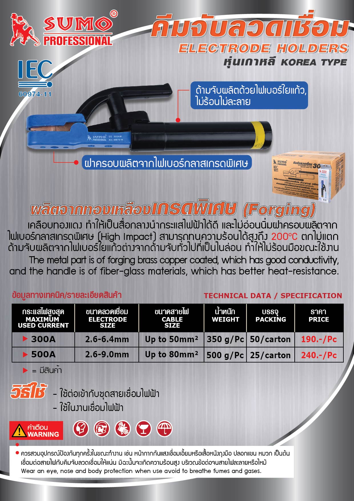 การใช้งาน : ใช้จับลวดเชื่อม ต่อเข้ากับชุดสายเชื่อมไฟฟ้า สำหรับงานเชื่อมไฟฟ้า