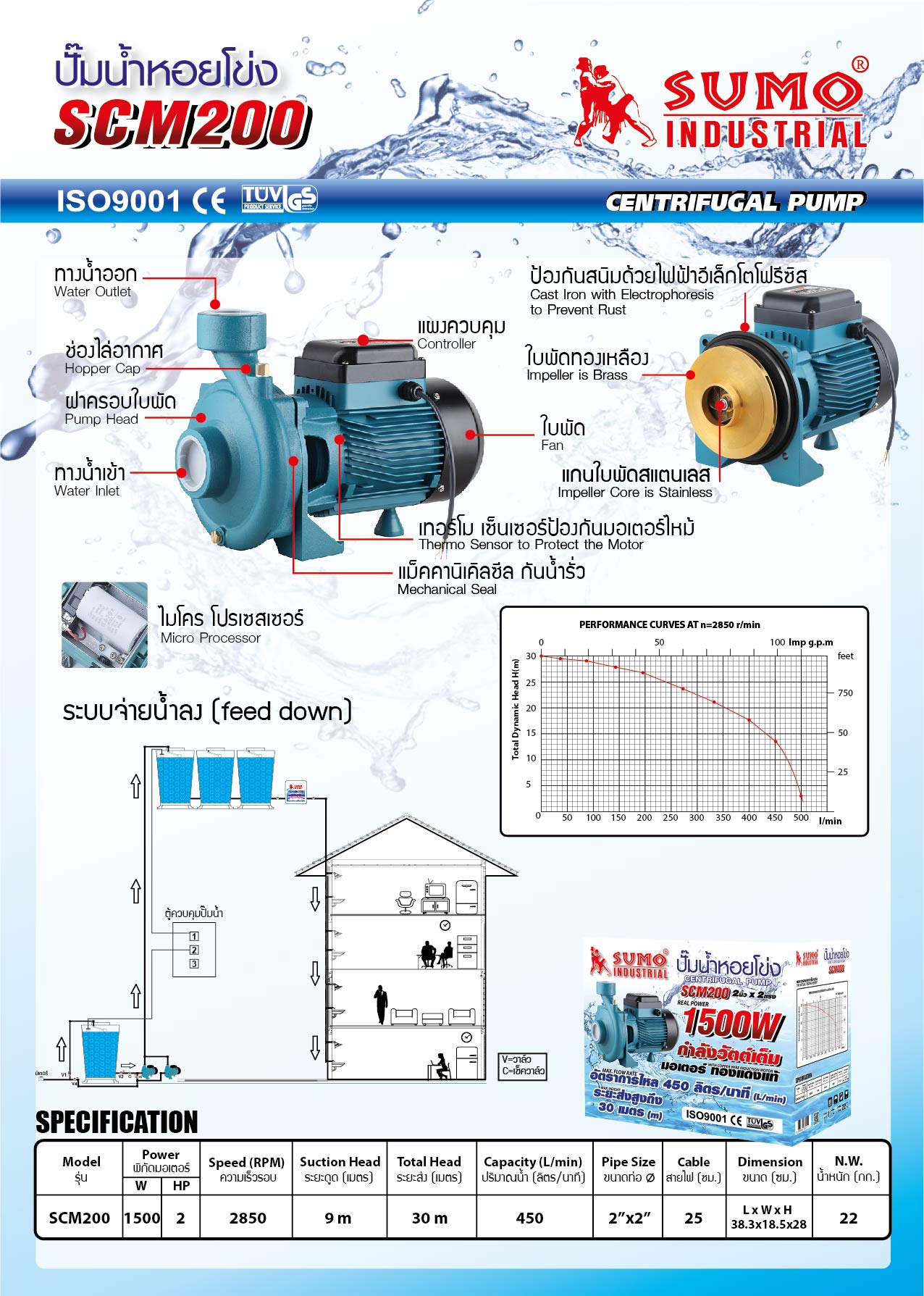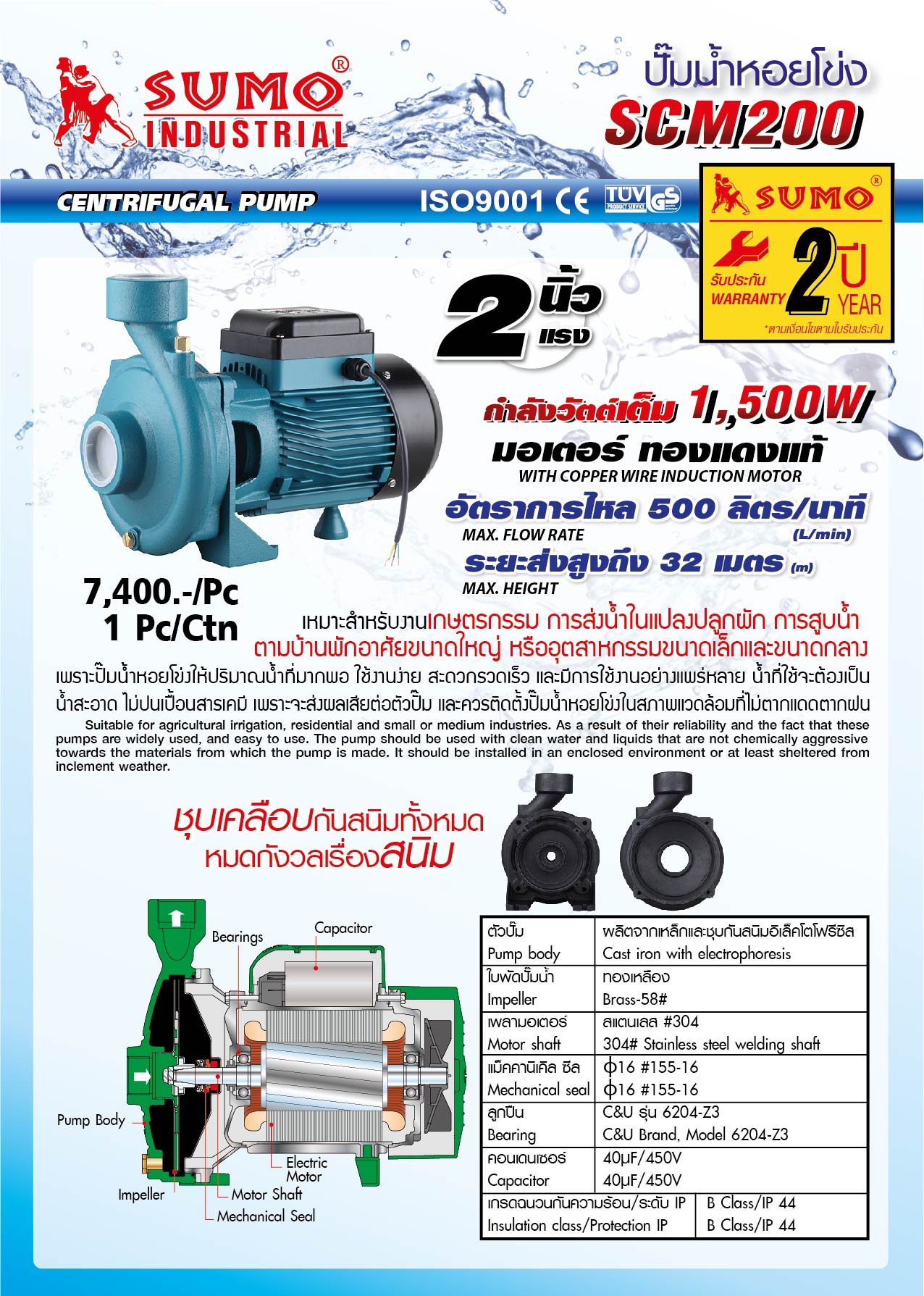 ปั๊มน้ำหอยโข่ง SCM200 2HP 150W SUMO