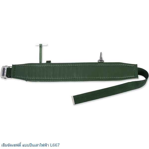 ใช้กับงานบนที่สูงในลักษณะอ้อมเสา สำหรับยึดเกี่ยวอย่างมั่นคง เพื่อที่ผู้ใช้สามารถทำงานได้อย่างเป็นอิสระเช่น งานปีนเสาไฟฟ้า งานโทรคมนาคม งานทาสี งานซ่อมแซม เป็นต้นLineman safety belts are for these who need to work on utility pole by wrapping around I-beams. User should hook safety belt strongly in order to work freely in position at the point of work. The kind of work that is suitable for lineman safety belt such as lineman, telecommunications, painting, repairing, etc.