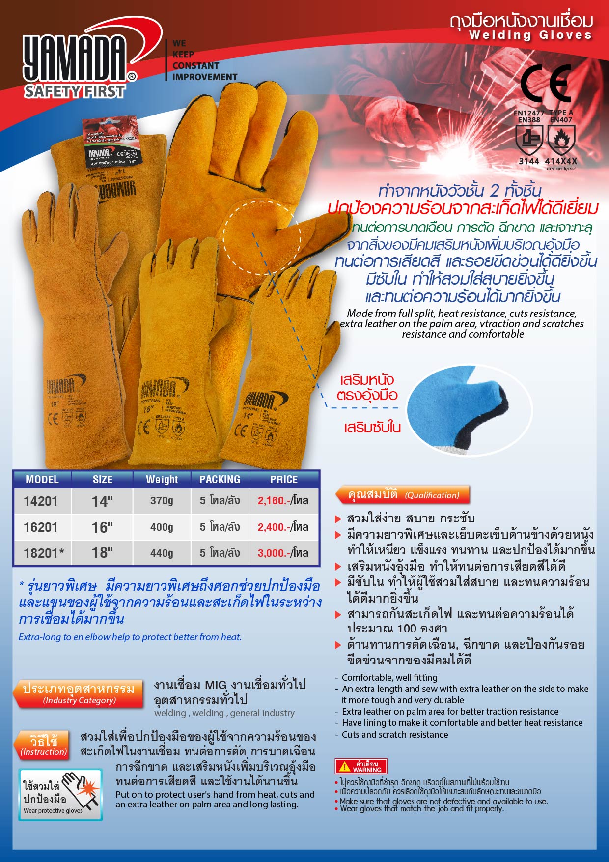 ถุงมือหนังงานเชื่อม 18นิ้ว รุ่น18202 YAMADA